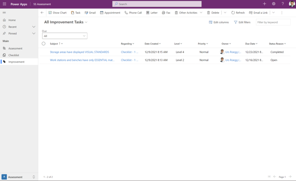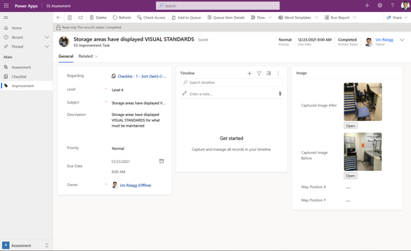 5S Check Improvements app – Main app for improvement owners to track assigned improvements and their progress.