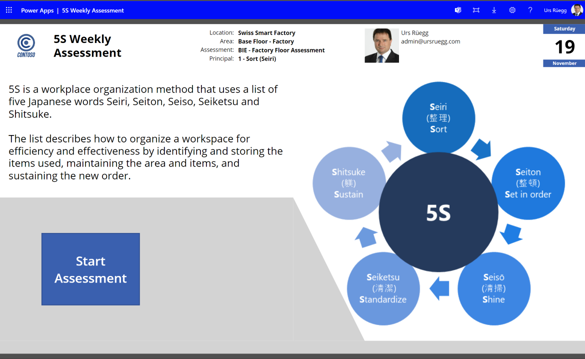 The 5S Assessment solution is a collection of three Power Apps to manage 5S methodology - Kaizen and Lean Management within an organization. We build this apps during a thee day Hackathon with the customer team.